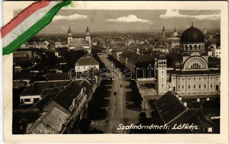 1940 Szatmárnémeti, Satu Mare; Bevonulás alkalmából magyar szalaggal / entry of the Hungarian troops, photo with Hungarian ribbon + "1940 Szatmárnémeti visszatért" So. Stpl