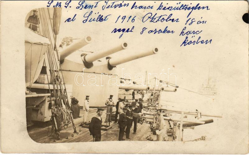 1916 SMS SZENT ISTVÁN osztrák-magyar haditengerészet Tegetthoff-osztályú csatahajó harci készültségben / K.u.k. Kriegsmarine / WWI Austro-Hungarian Navy dreadnought battleship. photo