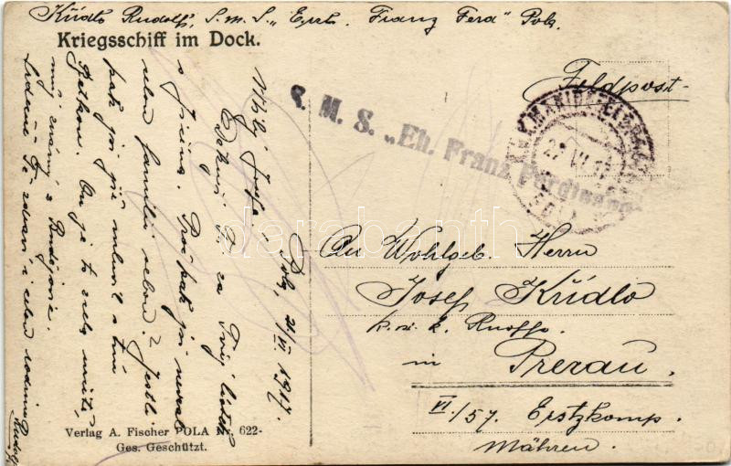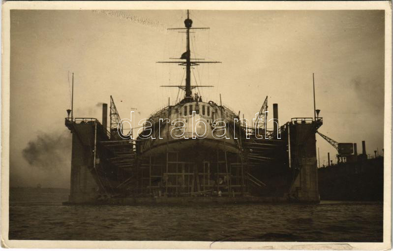 1917 Pola, SMS PRINZ EUGEN Osztrák-Magyar Haditengerészet pre-dreadnought csatahajó szárazdokkban / K.u.K. Kriegsmarine Kriegsschiff im Dock / Austro-Hungarian Navy ironclad warship' in dry dock. A. Fischer Nr. 622. + "S.M.S. "Eh. Franz Ferdinand"