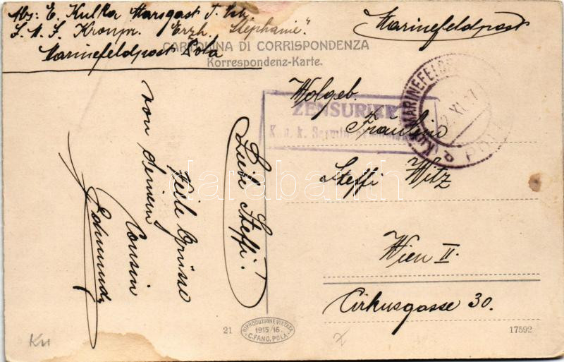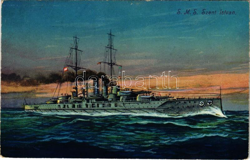 1917 SMS SZENT ISTVÁN osztrák-magyar haditengerészet Tegetthoff-osztályú csatahajója / K.u.k. Kriegsmarine / WWI Austro-Hungarian Navy dreadnought battleship. C. Fano Pola 1915/16. 21. + "Zensuriert" (fl)