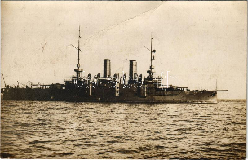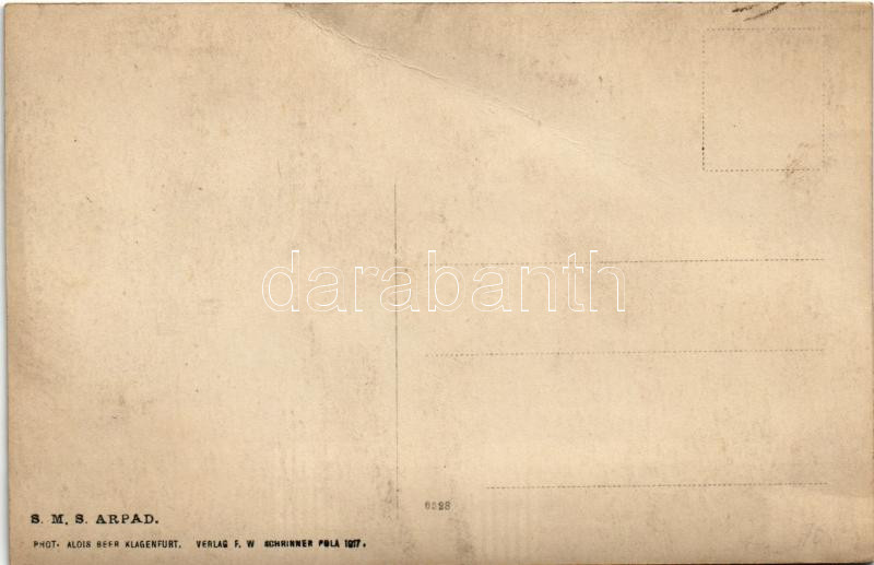 Leírás: SMS ÁRPÁD az Osztrák-Magyar Haditengerészet Habsburg-osztályú csatahajója / K.u.k. Kriegsmarine / Austro-Hungarian Navy Habsburg-class pre-dreadnought battleship. Phot. Alois Beer, F.W. Schrinner Pola 1917. (fa)