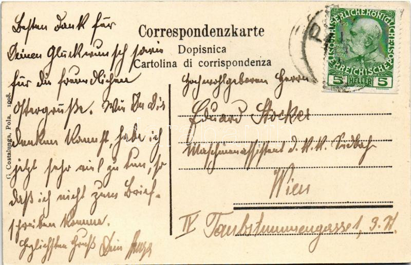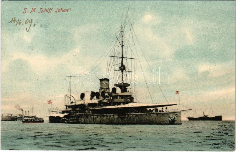 SMS Wien Osztrák-Magyar Haditengerészet Monarch-osztályú partvédő csatahajója / K.u.k. Kriegsmarine / Austro-Hungarian Navy SMS Wien coastal defense ship. G. Costalunga Pola 1908.