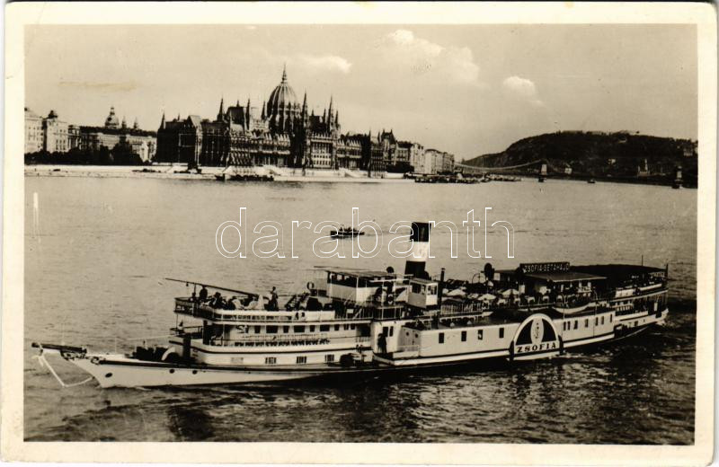 1942 Budapest V. Országház, Parlament, "ZSÓFIA" gőzös, gőzhajó (EK) https://www.darabanth.com/hu/466-Gyorsarveres/466.0/Kepeslapok/Magyarorszag~2000005/1942-Budapest-V-Orszaghaz-Parlament-ZSOFIA-gozos-gozhajo-EK~II3145134