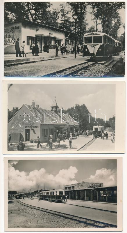 5 db MODERN magyar vasúti képeslap: MÁV, Széchenyi-hegy, Gyermekvasút, Úttörővasút, motorvonatok, Hűvösvölgy, Pest vármegye - Képzőművészeti Alap kiadások