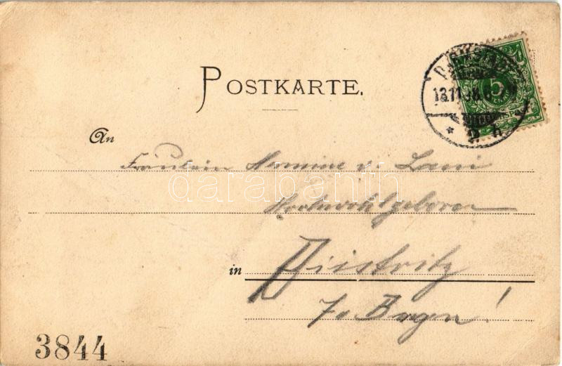 Leírás: 1898 (Vorläufer) Darmstadt, kézzel rajzolt képeslap / hand-drawn art postcard (lyuk / pinhole)