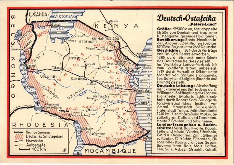 Deutsch-Ostafrika "Peters-Land". Verlag des Reichskolonialbu... https://www.darabanth.com/hu/466-Gyorsarveres/466.0/Kepeslapok/Propaganda-politika~2000070/Deutsch-Ostafrika-Peters-Land-Verlag-des-Reichskolonialbundes-Propaganda-map-of-German-East-Afr~II3145889