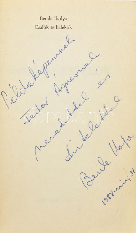 Bende Ibolya: Csalók és balekok. A szerző, Bende Ibolya által Fedor Ágnes (1909-1990) magyar író, újságíró részére DEDIKÁLT példány. Bp., 1988., Szerzői. Kiadói papírkötés.