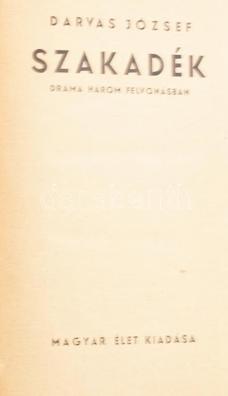 Darvas József: Szakadék. Dráma három felvonásban. Pápa,(1943),Magyar É... https://www.darabanth.com/hu/466-Gyorsarveres/466.0/Konyvek/Konyvek-Egyeb-ritkasagok~500042/Darvas-Jozsef-Szakadek-Drama-harom-felvonasban-Papa-1943-Magyar-Elet-Elso-kiadas-At~II3077320