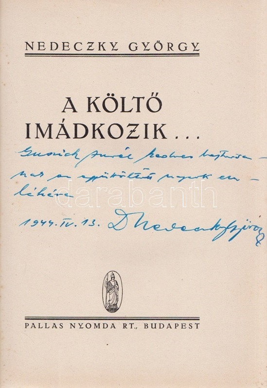 https://www.darabanth.com/hu/466-Gyorsarveres/466.0/Konyvek/Konyvek-Egyeb-ritkasagok~500042/Nedeczky-Gyorgy-A-kolto-imadkozik-Dedikalt-Budapest-1942-korul-Pallas-Irodalmi-C3~II3123258