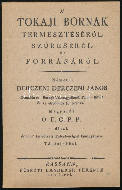A' tokaji bornak termesztéséről, szűréséről és forrásáról. Kassa, Füskúti Landerer Ferenc. Hasonmás kiadás. Megjelent 1000 példányban. Kiadói papírkötés, jó állapotban.