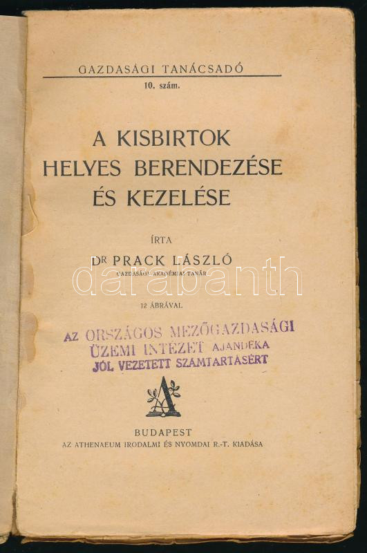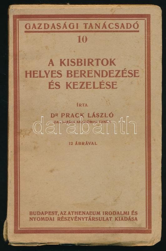Dr. Prack László: A kisbirtok helyes berendezése és kezelése. Gazdasági tanácsadó 10. sz. Bp., [1921], Athenaeum,160 p. Kiadói papírkötés, kissé sérült, foltos borítóval, helyenként kissé sérült lapszélekkel, kissé foltos lapokkal. Ritka!