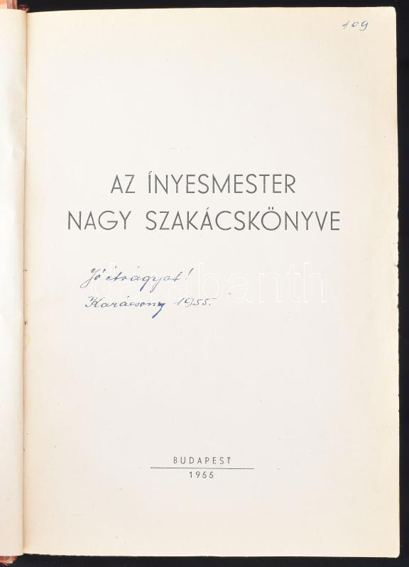 [Magyar Elek]: Az ínyesmester nagy szakácskönyve. Bp., 1955, Műszaki Könyvkiadó, 524 p. Kiadói félvászon-kötés, kopott, foltos borítóval, sérült gerinccel, laza kötéssel, a hátsó borítón sérüléssel.