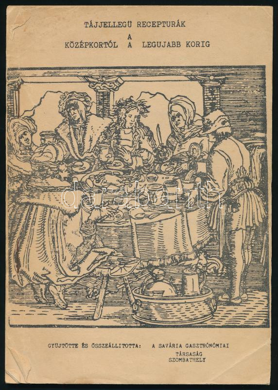Tájjellegü recepturák a középkortól a legujabb korig. Gyüjtötte és összeáll.: A Savária Gasztronómiai Társaság, Szombathely. H.n., é.n., magánkiadás. Kiadói tűzött papírkötés, kissé viseltes címlappal.