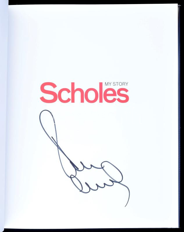 Paul Scholes - Ivan Ponting: Scholes. My Story. (AláÃrt könyv, tanúsÃtvánnyal). London, 2011, Simon & Schuster. ElsÅ‘ kiadás. Angol nyelven. Kiadói egészvászon-kötés, kiadói papÃr védÅ‘borÃtóban, jó állapotban. Paul Scholes (1974- ) angol labdarúgó, edzÅ‘ által aláÃrt példány. / First edition. In English language. Hardcover, with dust jacket, in good condition. Signed by Paul Scholes (1974- ) English footballer, coach, with certificate.