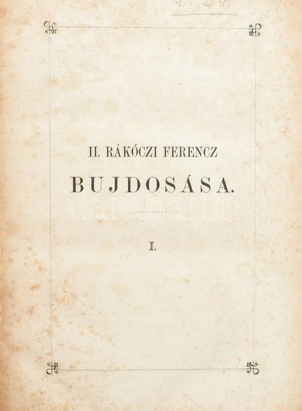 Szalay László: II. Rákóczi Ferenc bujdosása. I. köt. (Unicus!) Pest, 1864, Lauffer Vilmos (Kozma Vazul-ny.), XII+304 p. Átkötött félvászon-kötésben, helyenként foltos lapokkal, ceruzás aláhúzásokkal.