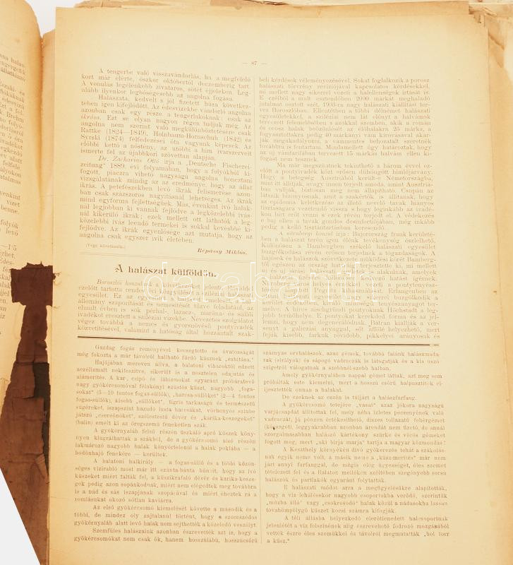 A Természet és a Halászat c., állattani, vadászat és halászati folyóirat szerk Dr. Lendl Adolf és Lakatos Károly. I-III. évfolyamának szórvány számai. 1899-1900 62 db teljes szám + 3 tartalomjegyzék + néhány tartozék. Hozzá kiadói aranyozott egészvászon borító. Lapszámok szélein sérülésekkel