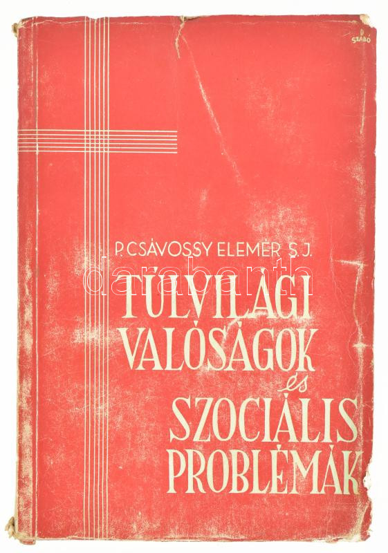 Csávossy Elemér: Túlvilági valóságok és szociális problémák. Cikkek és beszédek. Bp., 1938, Korda Rt., 236+(2) p. Kiadói papÃrkötés, kopott, kissé sérült borÃtóval, néhány kissé foltos lappal. A cÃmlapon Meixner Emilné névbejegyzésével.