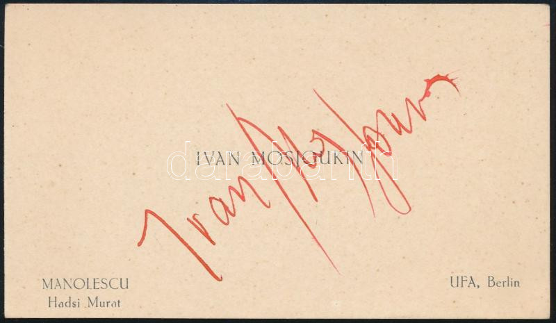Ivan Mosjoukine / Iwan Mosjukin / Ivan Mozzhukhin (1889-1939) orosz némafilm színész aláírása névjegykártyáján / Russian silent film actor's signed business card