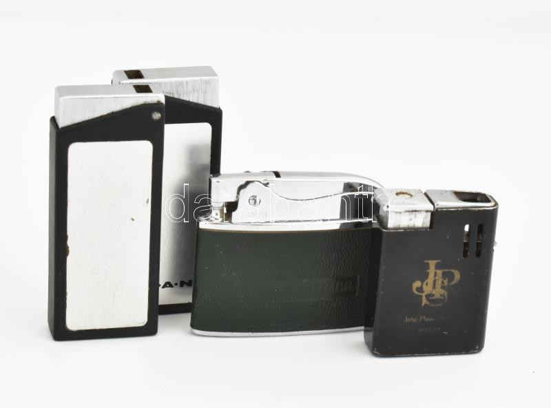 Leírás: 4 db töltős öngyújtó, közte John Player, működőképes, kopással