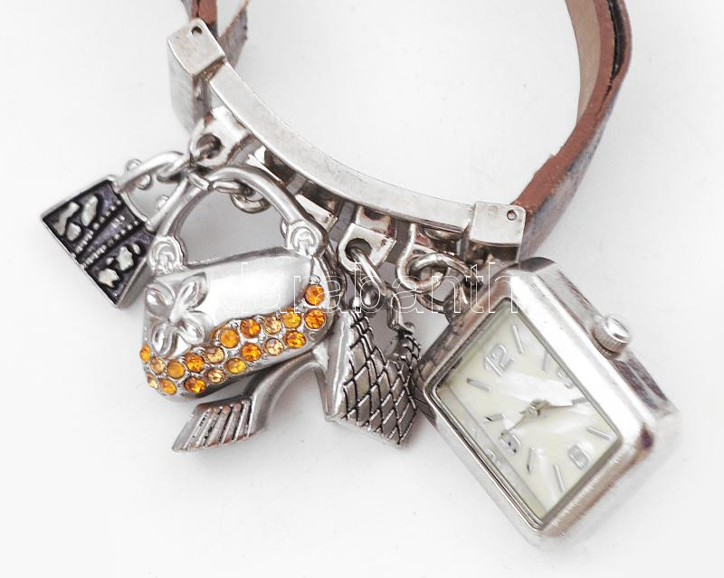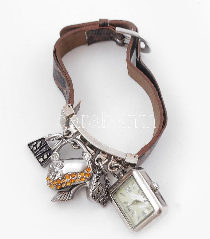 Leírás: Karkötő 5 db klf charmmal bőr, fém