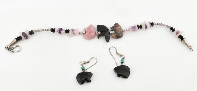 Leírás: Ásvány karkötő és fülbevalópár, h: 21 cm