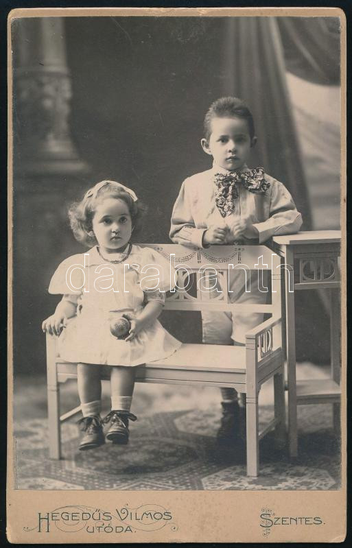 Leírás: cca 1925 Szentes, Hegedűs Vilmos utóda fényképészeti műtermében készült, keményhátú vintage fotó, ezüst zselatinos fotópapíron, 16x10 cm