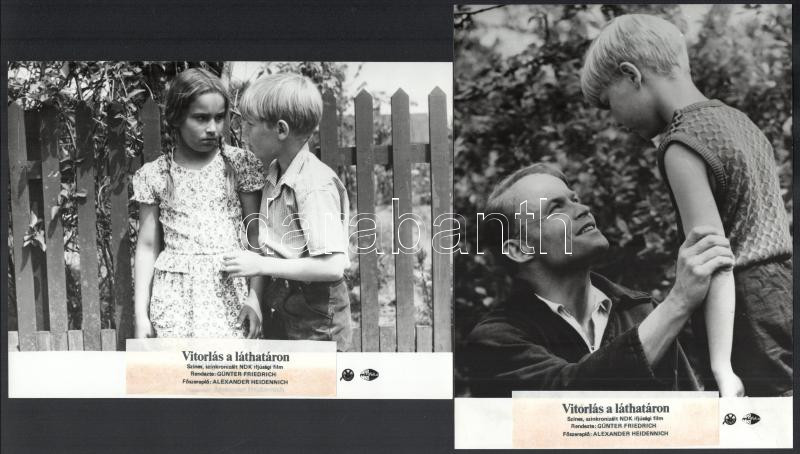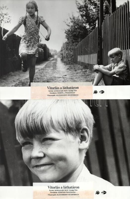 cca 1989 előtti ,,Vitorlás a láthatáron" című NDK-beli film jelenetei és szereplői, 4 db vintage produkciós filmfotó (vitrinfotó, lobbyfotó) ezüst zselatinos fotópapíron, a használatból eredő (esetleges) kisebb hibákkal, a címmező felülragasztva, mert korábban más címe volt, 18x24 cm