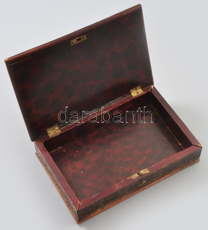 Leírás: Edwalko Stadt Nürnberg in Pesth fa díszdoboz, ón és réz berakásokkal / rárakásokkal, nyomógombos nyitószerkezettel, jó állapotban, 16x10x4,5 cm