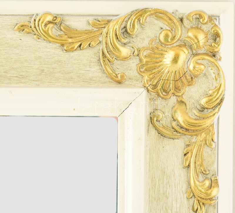 Tükör, olasz stílusú fa képkeretben, részben aranyozott, kis sérüléssel, összességében jó állapotban, 64x54 cm /// KIZÁRÓLAG SZEMÉLYES ÁTVÉTEL, NEM POSTÁZZUK! / ONLY PERSONAL COLLECTION AT OUR OFFICE!