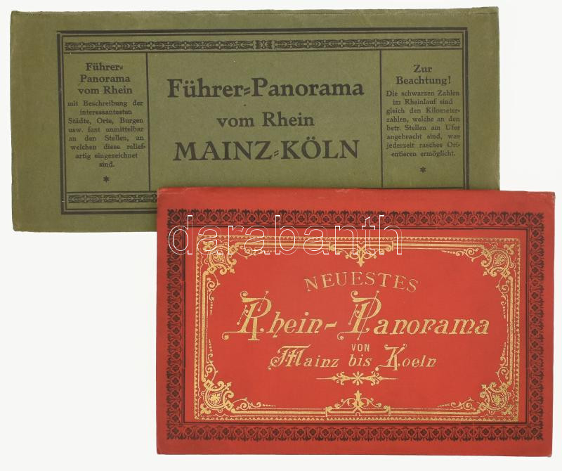 ca 1890 Neuestes Rhein-Panorama von Mainz bis Coeln. G. Blümlin & Co., Frankfurt Litografált laporelló a Rajna folyásáról szép aranyozott egészvászon kötésben, + hozzá egy későbbi kiadás.