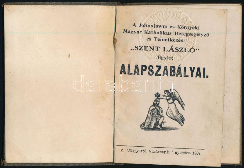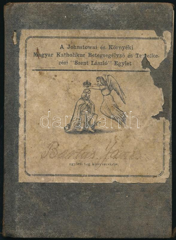 Leírás: 1907 A Johnstowni és Környéki Magyar Katholikus Betegsegélyező és Temetkezési Szent László Egylet alapszabályai. és tagsági könyve