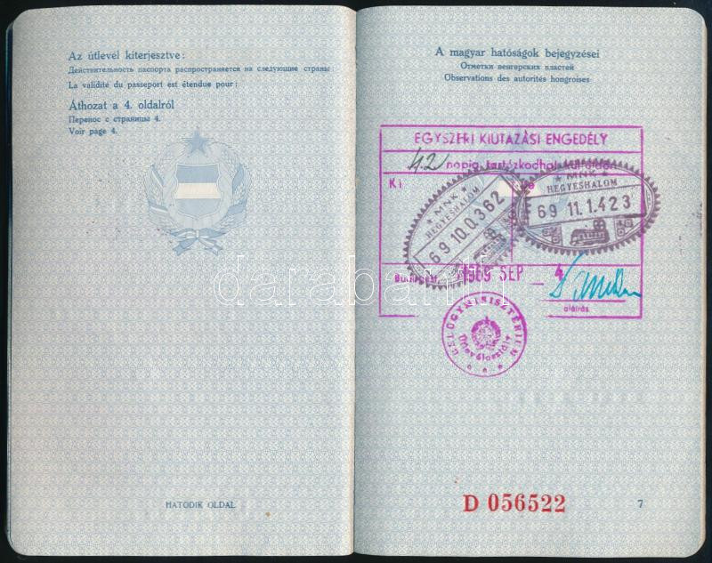 1969 Magyar Népköztársaság, fényképes kék útlevél, belga, francia, osz... https://www.darabanth.com/hu/466-Gyorsarveres/466.0/Mutargy-papirregiseg-egyeb/Okmanyok~20/1969-Magyar-Nepkoztarsasag-fenykepes-kek-utlevel-belga-francia-osztrak-vizumokkal~II3146681