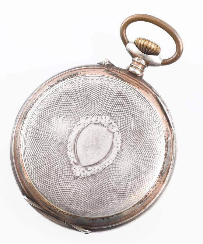 Leírás: Ezüst (Ag) zsebóra. Jó állapotú tokkal számlappal, szerkezet elindul de javításra szorul, m d: 47 mm