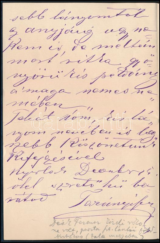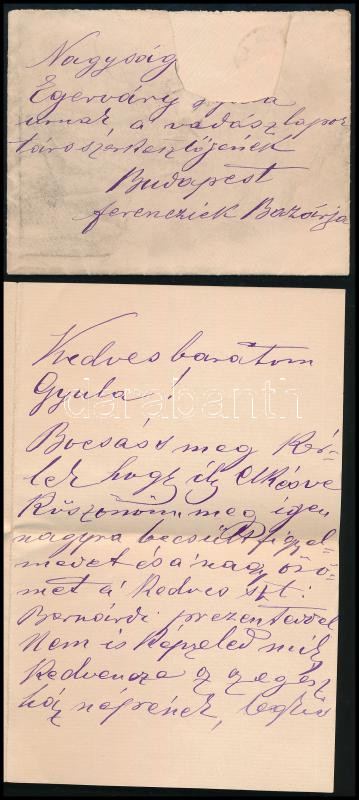 cc 1891 Nyirlaki Tarányi Ferenc (1878-1945), Zala vármegye főispánja, nagybirtokos, nemzetgyűlési képviselő és, felsőházi tag, Zala vármegye törvényhatósági bizottsági tag, elnöke a Zalavármegyei Gazdasági Egyesületnek és Nemesi Választmányának tagja autográf levele, borítékkal
