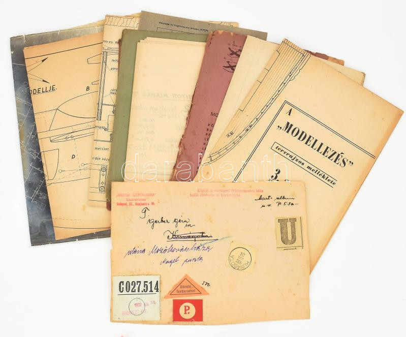 cca 1932-1962 Modellezés témájú anyagok, tervrajzok, vegyes méretben és állapotban + cca 1950 Rákosi Mátyás Vas- és Fémművek (korábban Weiss Manfréd Acél- és Fémművek, 1956-tól Csepel Művek) helyszínrajza, kissé sérült, középen hajtott, 27x38,5 cm