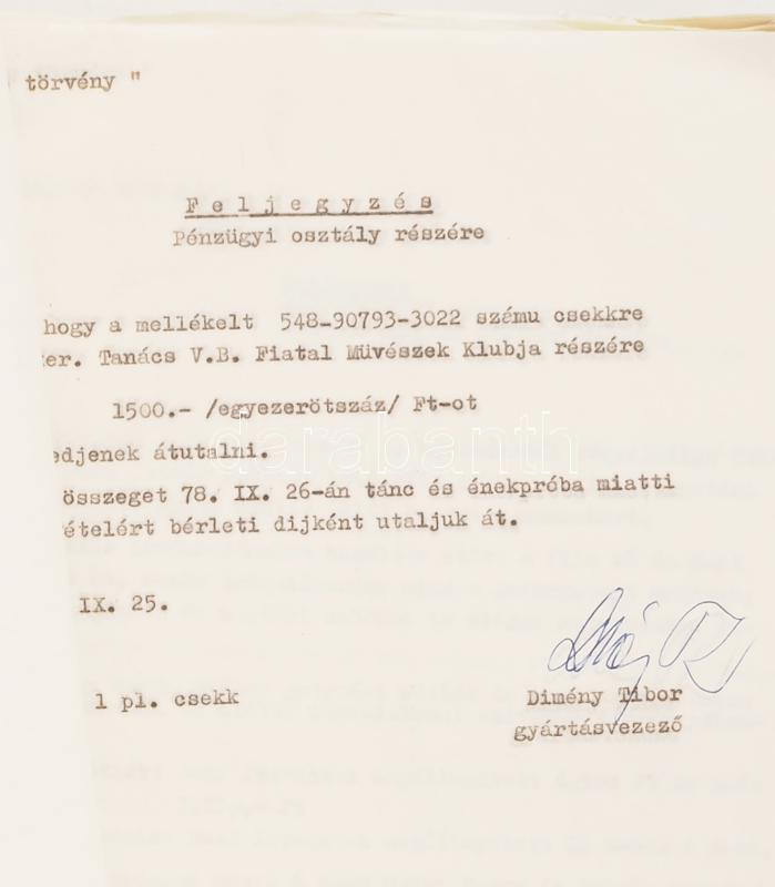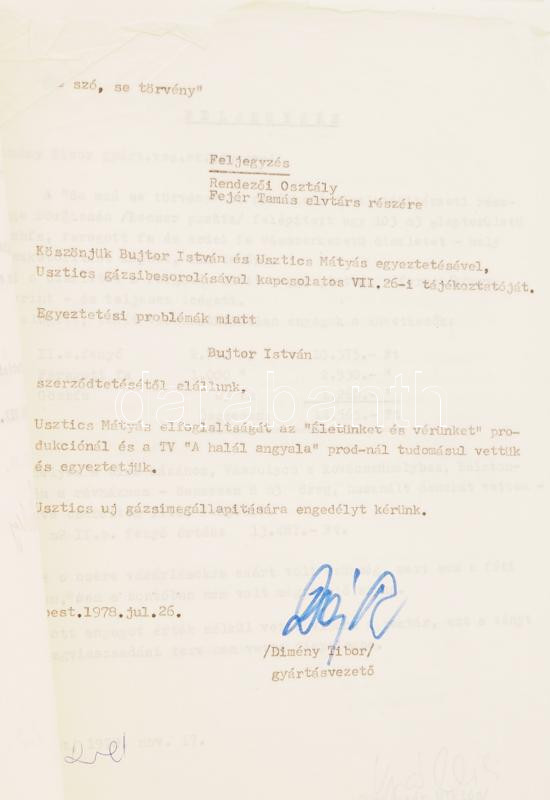 cca 1978-1979 A Rosszemberek c. 1979-ben bemutatott magyar western film (rendezte: Szomjas György) gyártási dokumentációja: egy nagy mappányi vegyes irat, rajtuk Szomjas György (1940-2021) rendező, Dimény Tibor gyártásvezető, és más ismert személyek aláírásaival. Tartalmas, átnézendő anyag, érdekes dokumentumokkal.