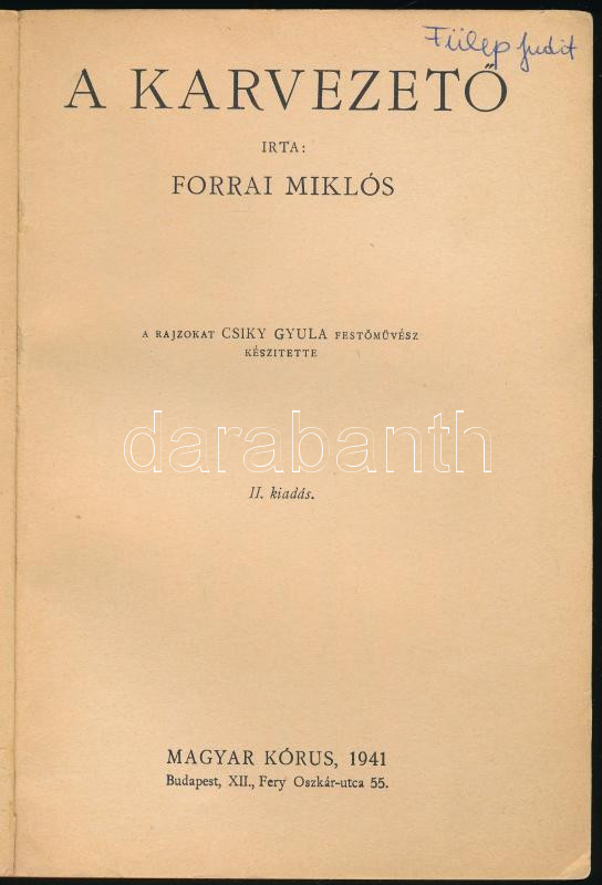 Forrai Miklós: A karvezető. Csiky Gyula rajzaival. Bp., 1941, Magyar Kórus, 127+(1) p. Második kiadás. Kiadói papírkötés, kissé sérült, foltos borítóval, belül túlnyomórészt jó állapotban.