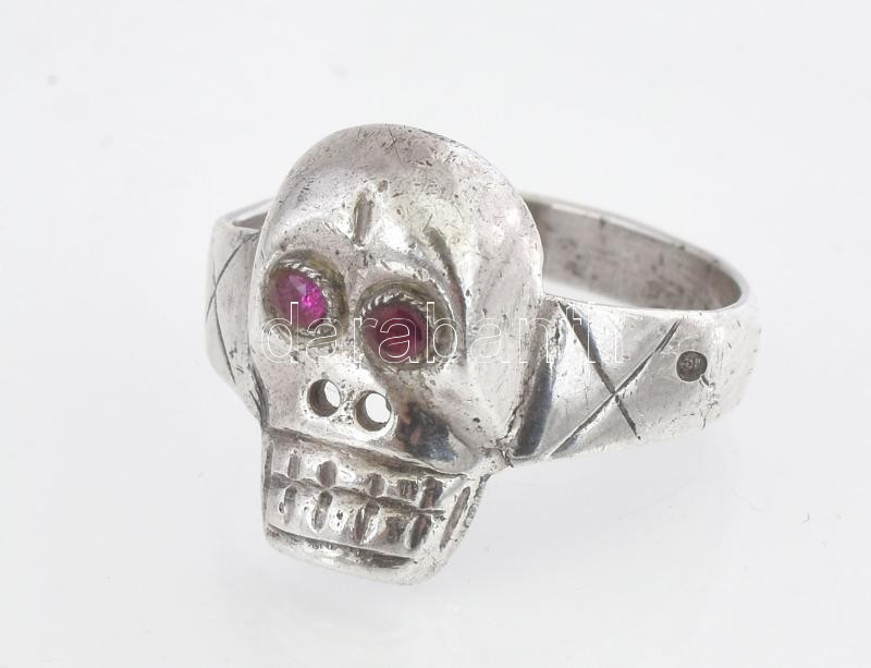 Leírás: Ezüst (Ag) halálfejes gyűrű, jelzett, méret: 55, bruttó: 3,9 g