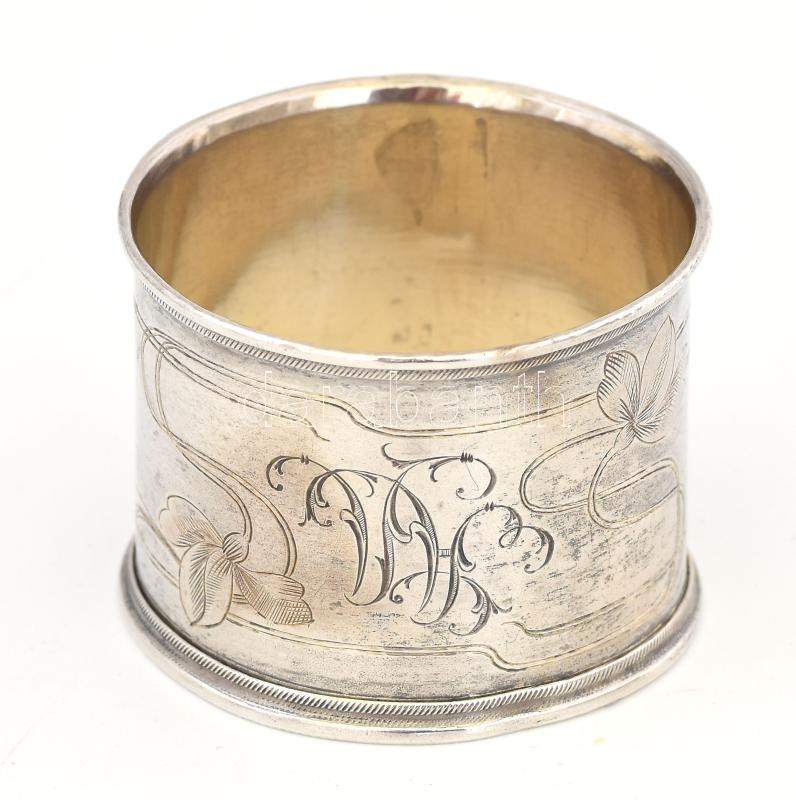Leírás: Ezüst (Ag) szalvétagyűrű jelzett gravírozott 27,5 g