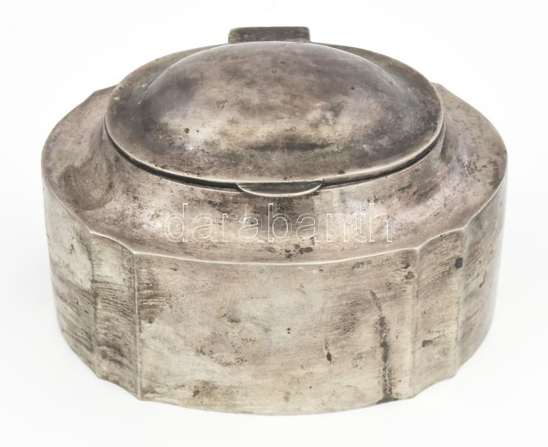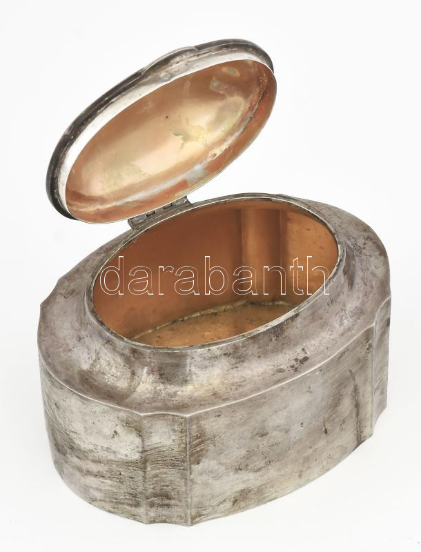 Ezüst(Ag) cukordoboz, jelzett, 13×9,5×8 cm, nettó: 262 g https://www.darabanth.com/hu/466-Gyorsarveres/466.0/Nemesfem-disztargyak-ekszerek-dragakovek/Nemesfem-disztargyak-ekszerek-dragakovek~500041/EzustAg-cukordoboz-jelzett-13C3979-5C3978-cm-netto-262-g~II3149552
