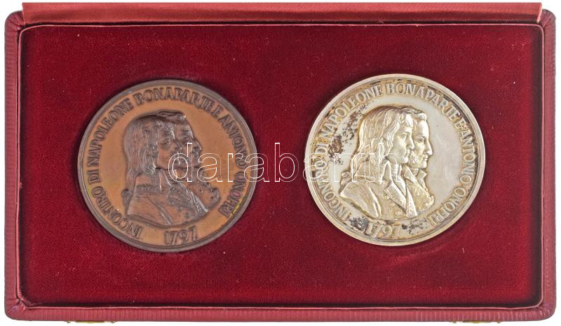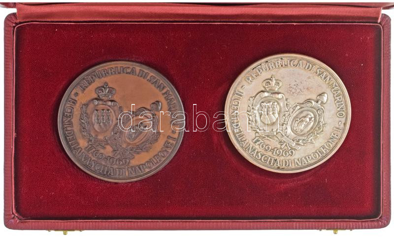 San Marino 1969. "I. Napóleon születésének 200. évfordulója / Bonaparte Napóleon és Antonio Onofri találkozása" kétoldalas, bronz és jelzett Ag emlékérem pár dísztokban (60mm/0.800/100g) T:UNC patina