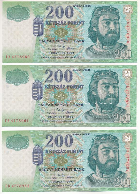 Leírás: 2002. 200Ft (3x) sorszámkövetők "FB 4778960 - FB 4778962" T:UNC