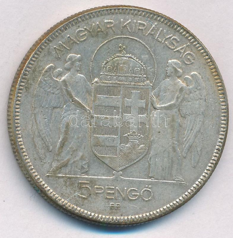 Leírás: 1930. 5P Ag "Horthy jobbra" T:VF patina Adamo P8