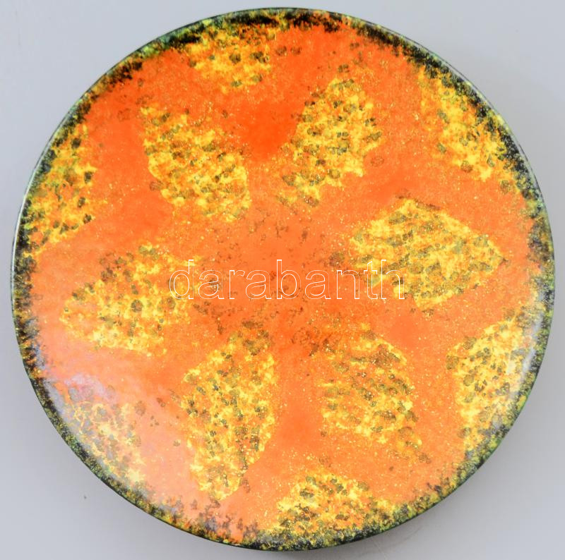Leírás: Iparművészeti dísztál. Jelzés nélkül, hibátlan, d: 27,5 cm