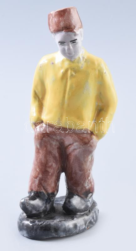 Leírás: Ismeretlen keramikus: Kucsmás férfi. Jelzés nélkül, kopással, m: 16,5 cm
