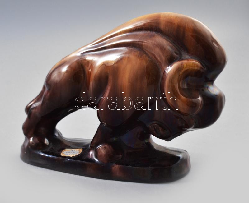 Leírás: Komlós testvérek Budapest: Bivaly könyvtámasz. Mázas kerámia, jelzett, kis kopással, 21x16 cm