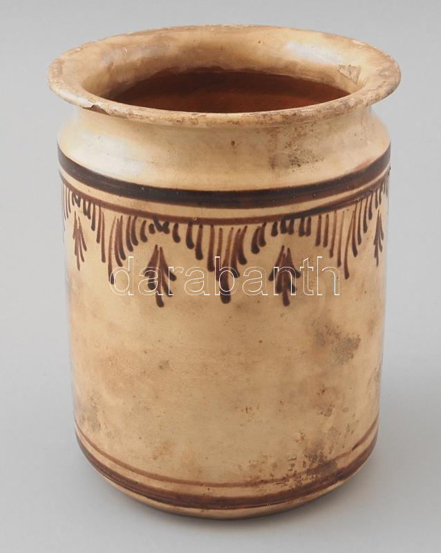 Leírás: Konyhai tárolóedény. Óbánya, 20. sz. eleje, kis sérülésekkel, m: 16,5 cm