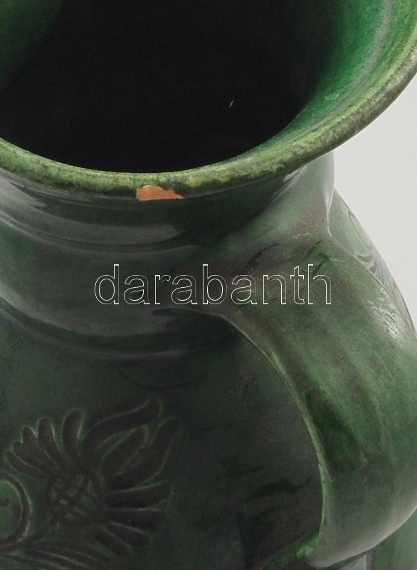 Leírás: Mónus Sándor (1909-1996): Miskakancsó. Zöldmázas kerámia, jelzett, miinmális kopással, m: 21,5 cm