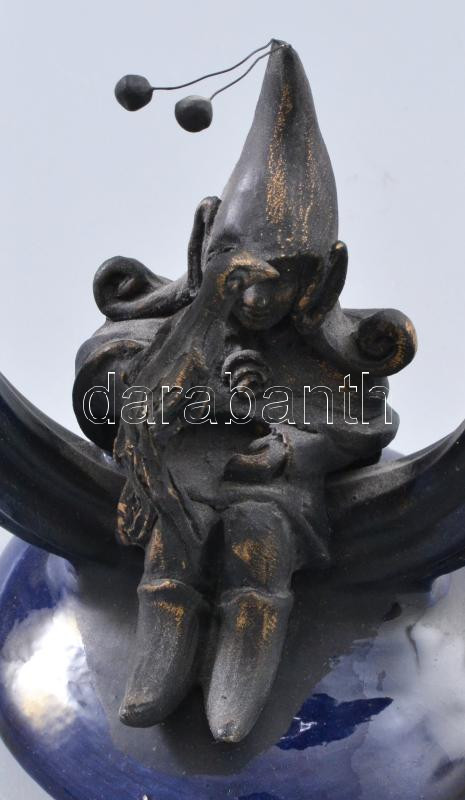 Leírás: Morvay Zsuzsa (1946-): Gyertyatartó törpe figurával. Jelzés nélkül, kis kopással, m: 17,5 cm