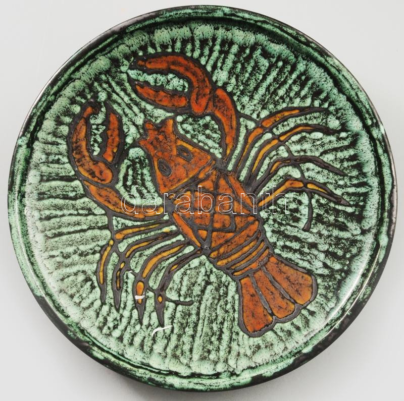 Leírás: Rákos tál. Színes mázakkal festett kerámia, jelzés nélkül , hibátlan. d: 31 cm Lábakon